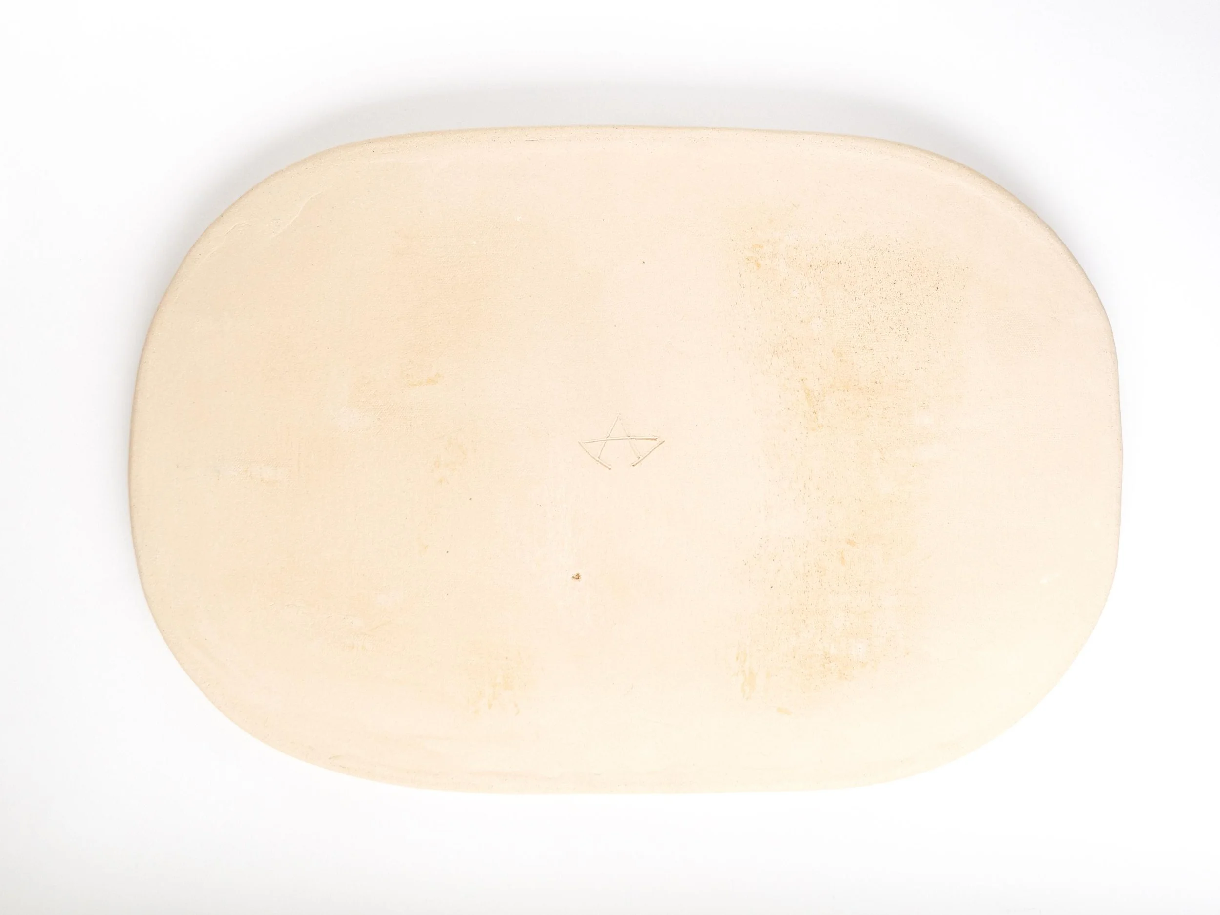Large oval ceramic platter hand pressed with summer grasses and painted with deep blue cobalt oxide.